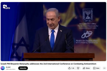 Israeli PM Binyamin Netanyahu addresses the 2nd International Conference on Combating Antisemitism